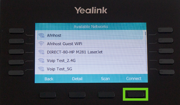 - Press the ‘Scan’ softkey to scan for available networks to connect to.