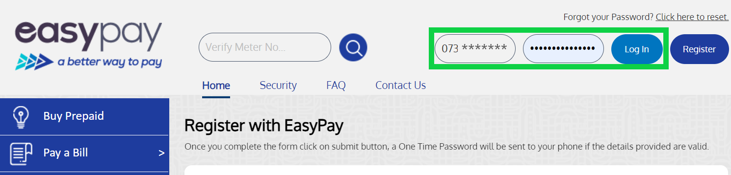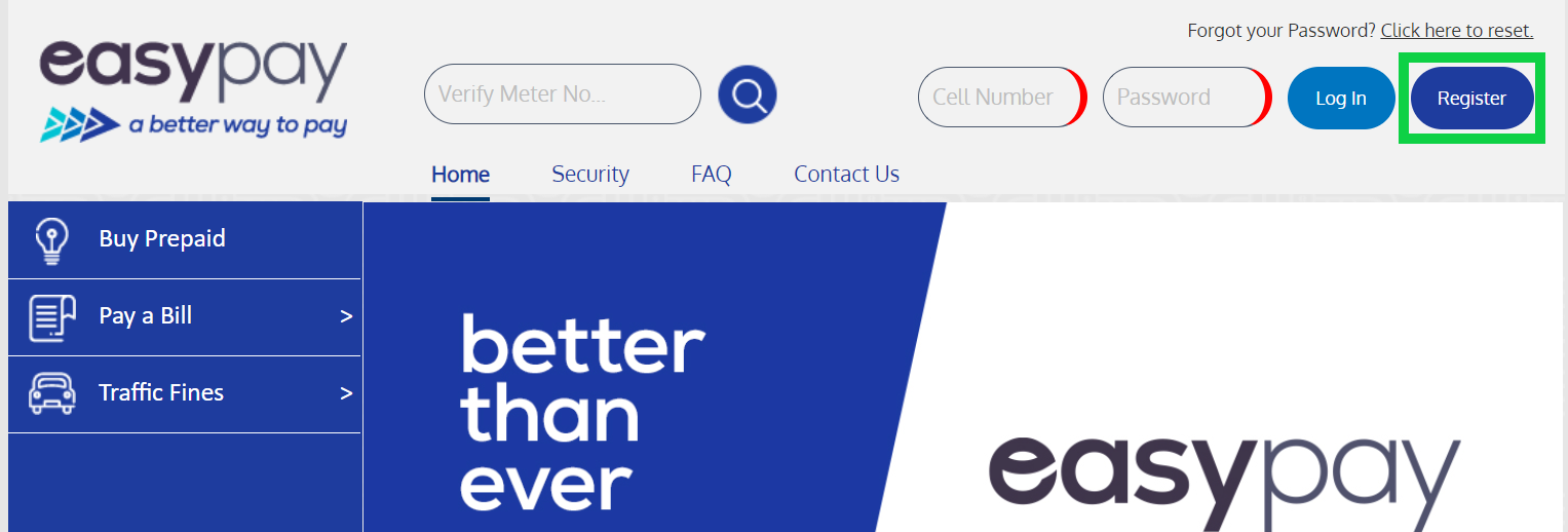 - Register on the EasyPay website to create an account before you can start making online payments.