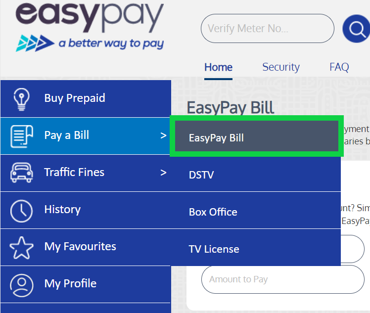 - Select ‘EasyPay Bill’ from the sub-menu options.