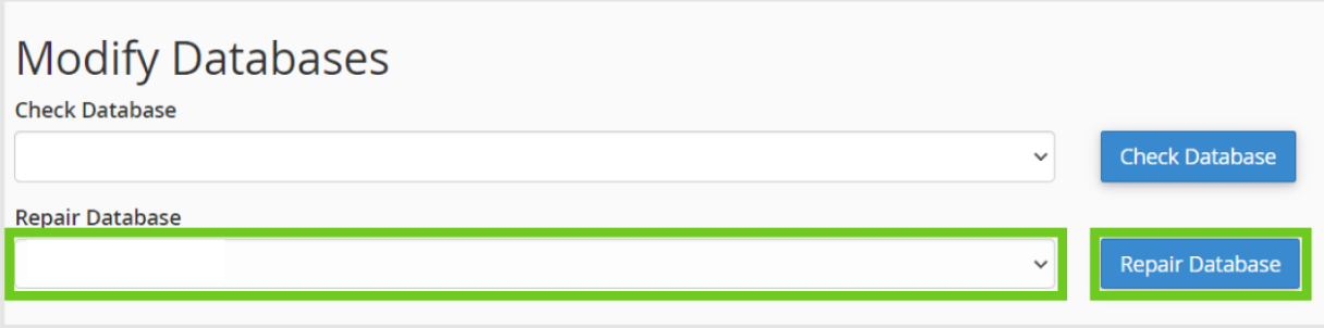 - Under ‘Modify Databases’, select the ‘Repair Databases’ drop-down menu and select the database that needs to be repaired.