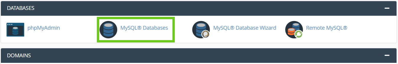 - Under ‘DATABASES’, select ‘MySQL Databases’.
