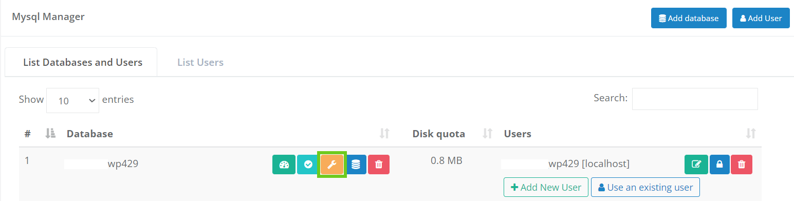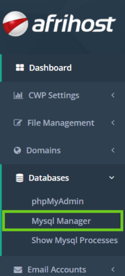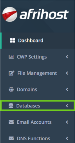 - Go to the ‘DATABASES’ section in cPanel or CWP.