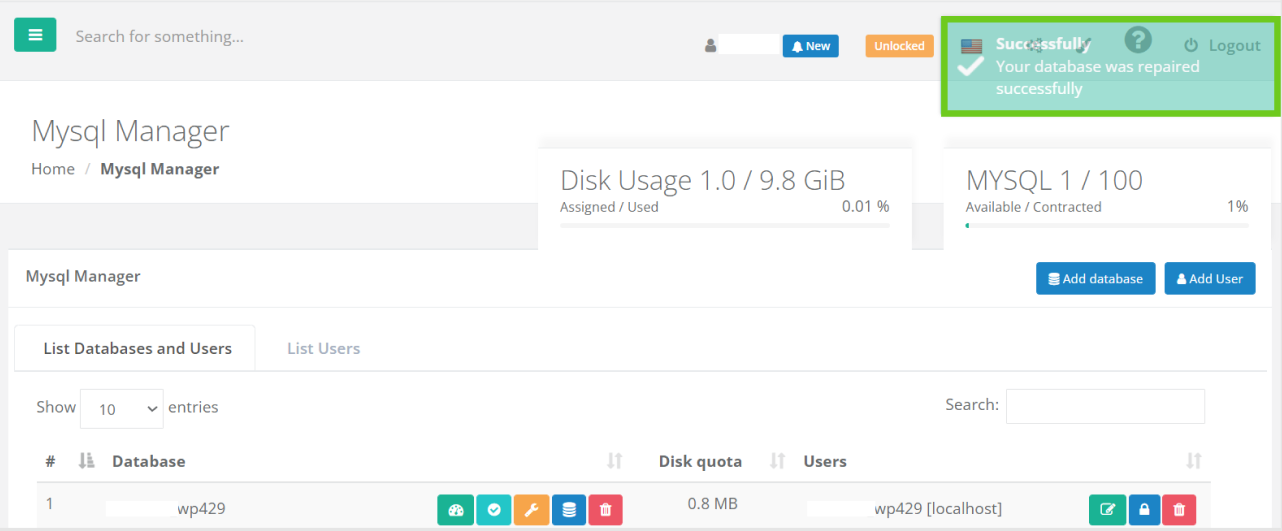 - You will get a pop up on the top-right corner of the screen showing the database has been repaired successfully.
