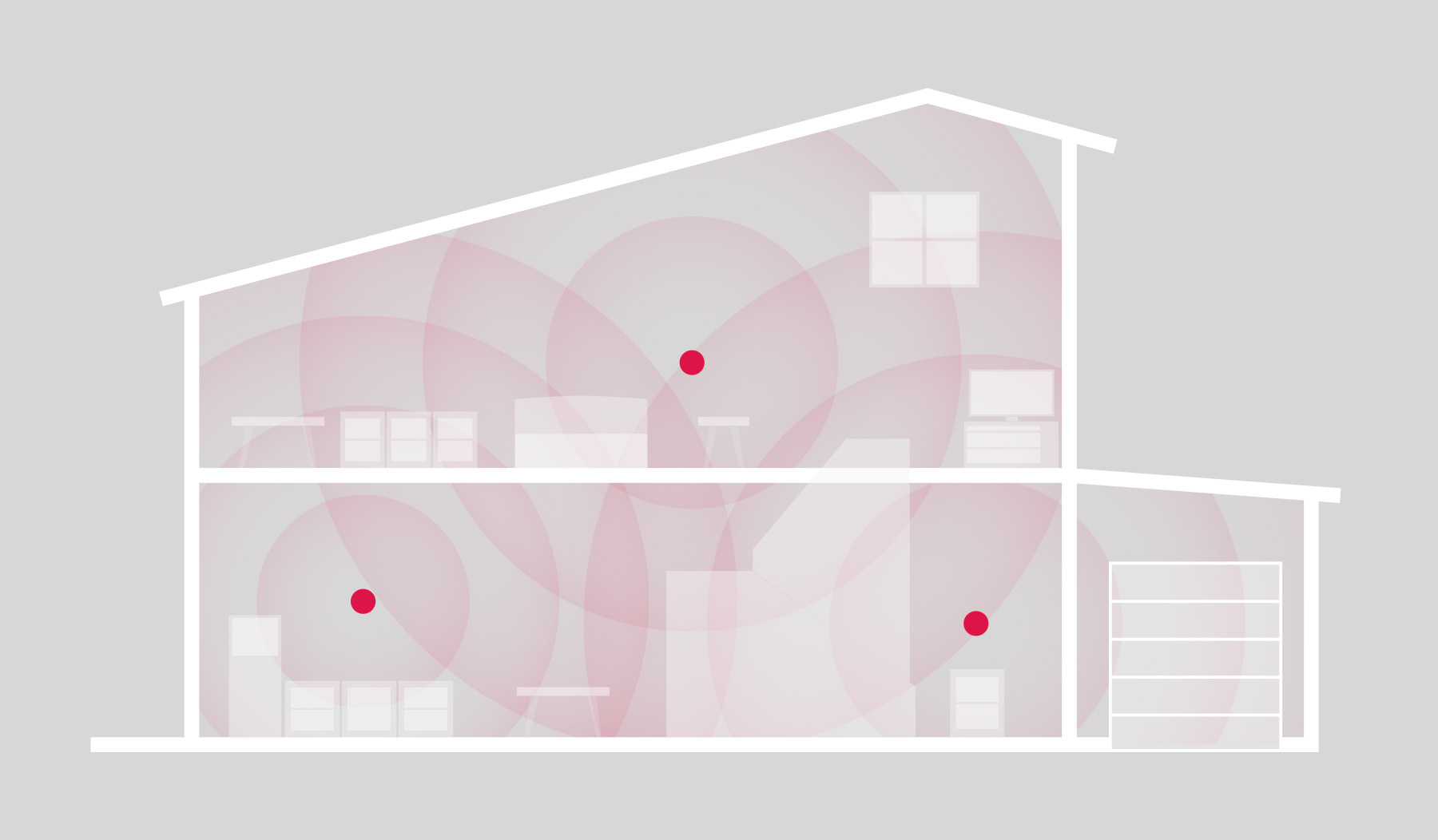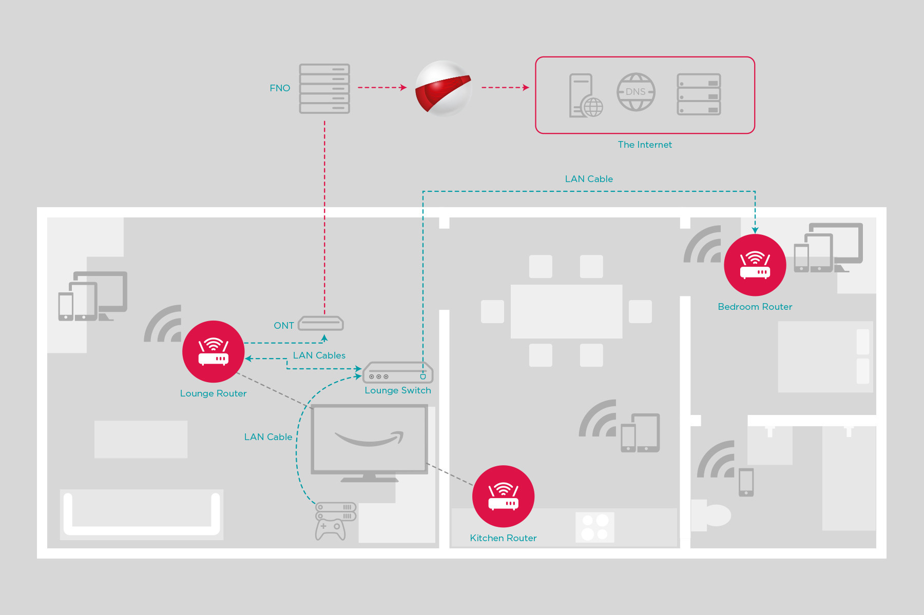 Traditional WiFi routers broadcast a WiFi signal from one location, the further you are from the router the weaker the signal, and any walls, tiles or electrical interference can affect the signal stability and speed.