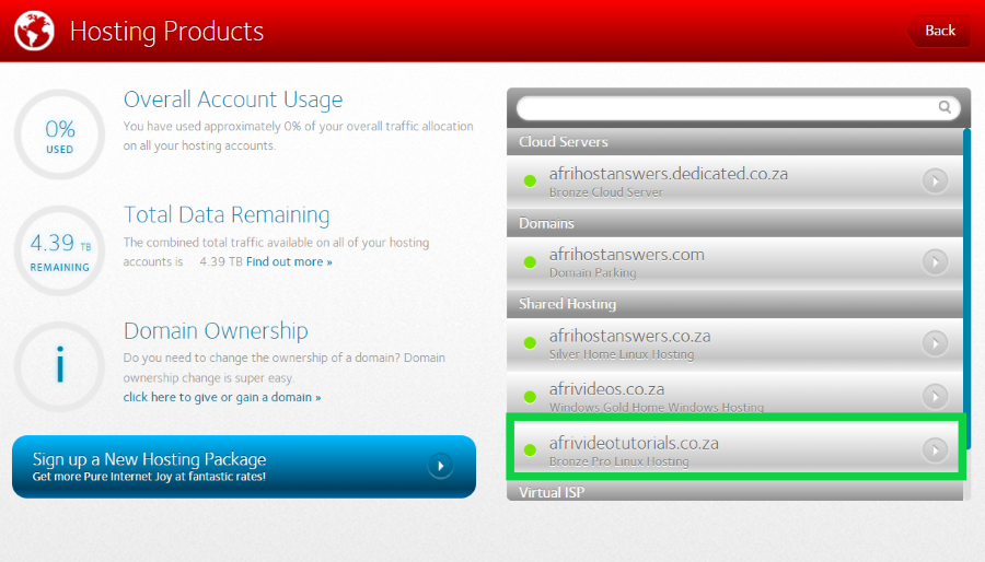 - Select the ‘Hosting' tab.