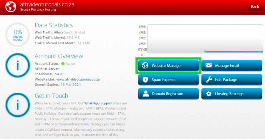 - Click on the ‘Website Manager’ button.