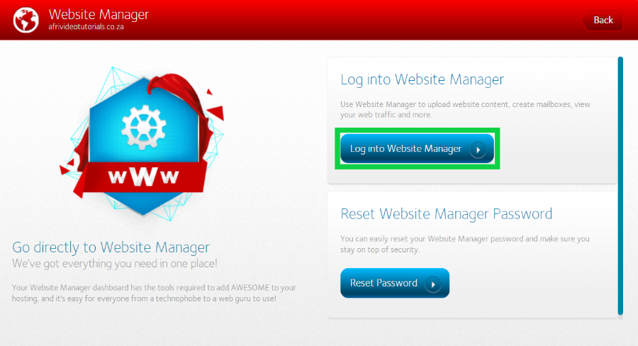 - Click on ‘Log into Website Manager’.