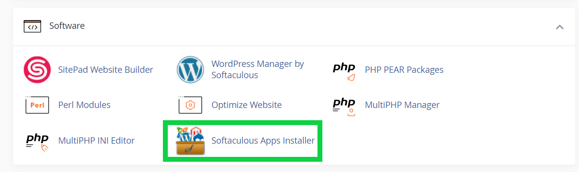 - Scroll down to Software and select ‘Softaculous Apps Installer’.