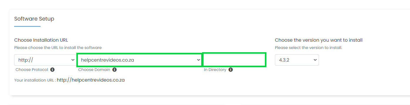 - Under ‘Choose Installation URL’ select the domain or subdomain you want to install Joomla to.