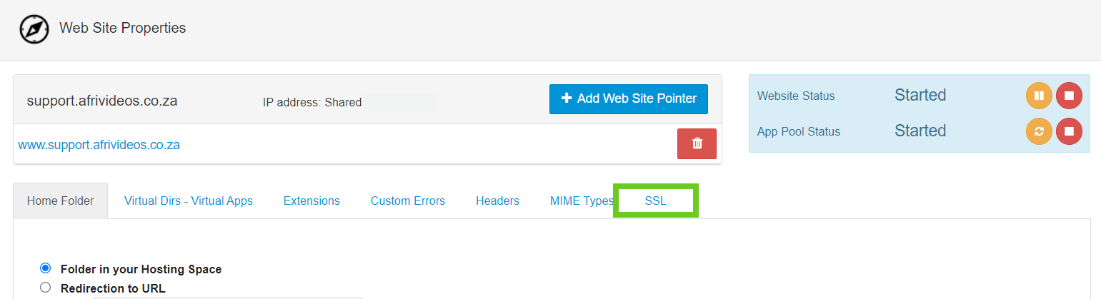 - Select the ‘SSL’ tab.