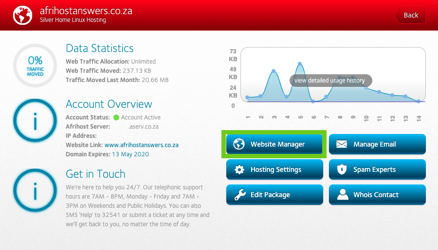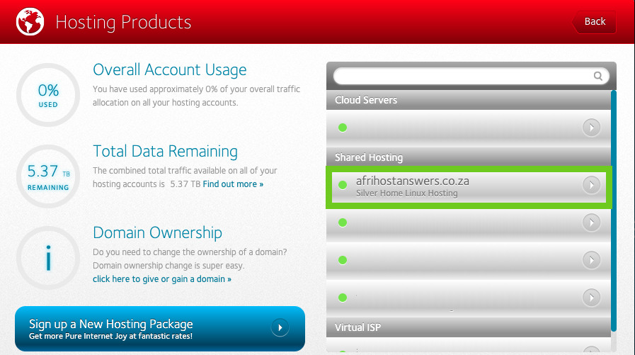 CWP (CentOS Web Panel) is a Web Hosting control panel that comes with an Afrihost hosting package. CWP was designed for quick and easy management of your server and website.