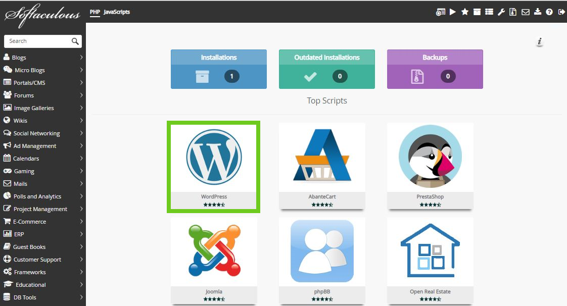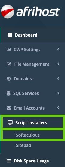 - Now in CWP, select ‘Script installers’ in the menu on the left.