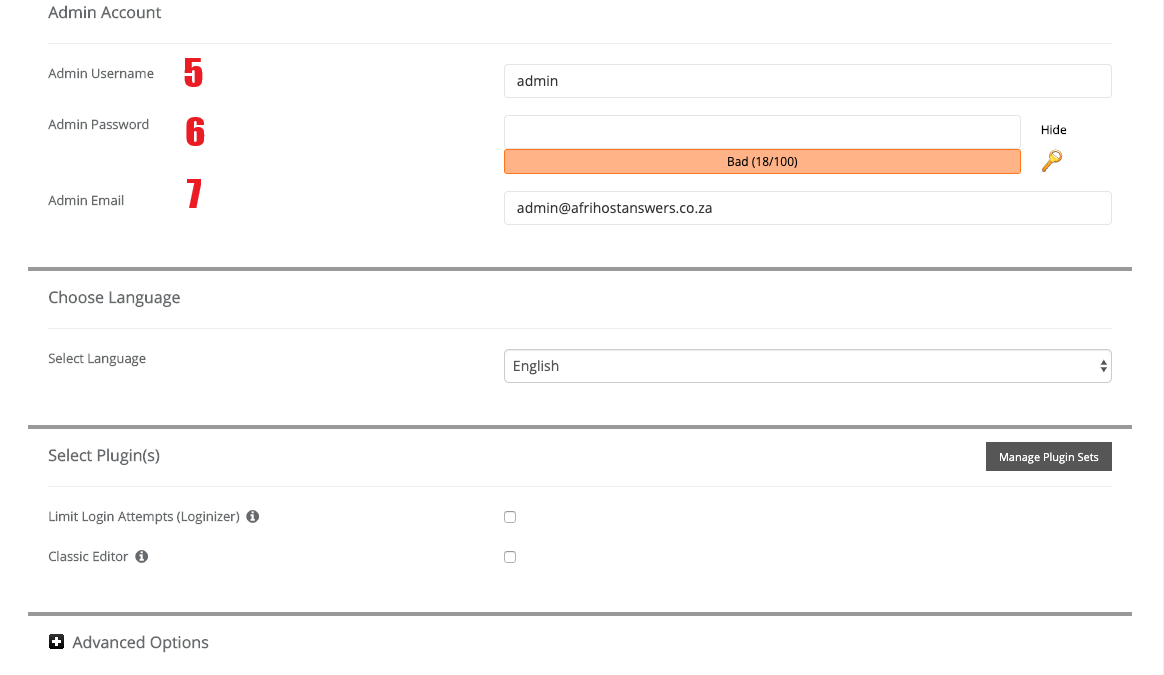 - Admin Username - Enter your username for your WordPress dashboard login.