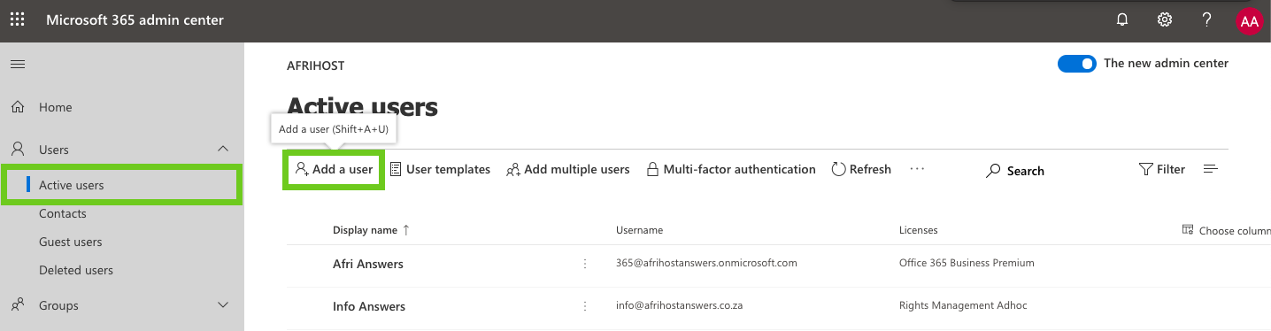 - In the Microsoft 365 Admin Portal, select ‘Users’ from the menu on the left-hand side.