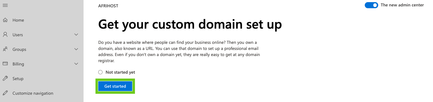 - Under Get your custom domain set up, select ‘Get Started‘.