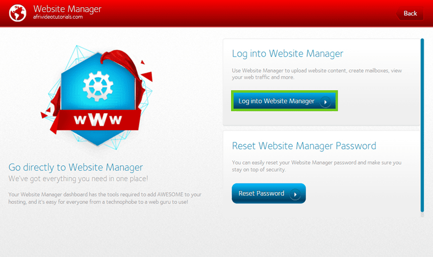 Should you get the error; Bad Credentials, please click on 'Reset Password' and then try to log in again. Please take note of the cPanel username and password that pop up on your screen.