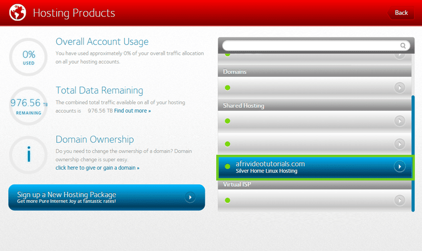 - Under the ‘Shared Hosting’ section, select the domain you wish to access.