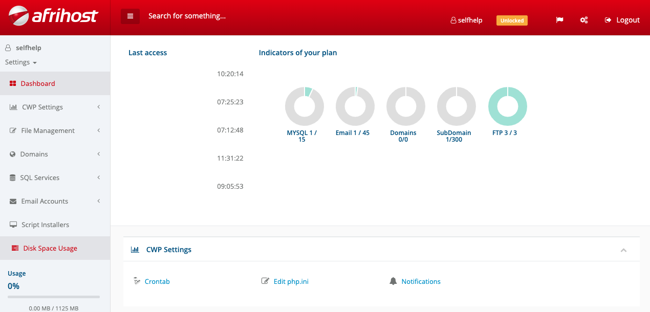 - You are now in the Centos Web Panel (CWP) dashboard.
