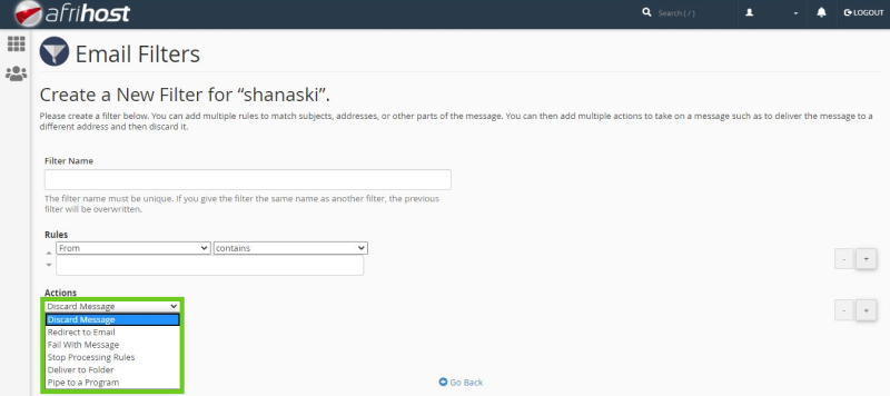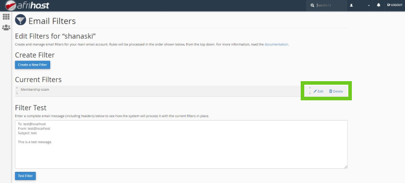 Follow the steps below to view, edit or delete an email filter in cPanel.