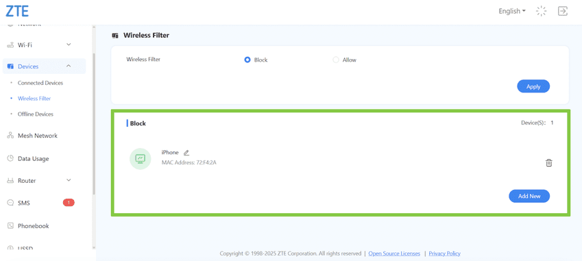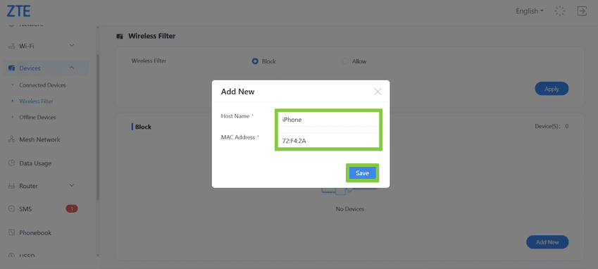 Every device that connects to your network has a unique MAC address (Media Access Control) including smartphones, computers, printers, and gaming consoles. A MAC address identifies a device on the local network. With MAC address filtering, you can view connected devices, block unwanted devices and allow previously blocked devices back onto your WiFi network.