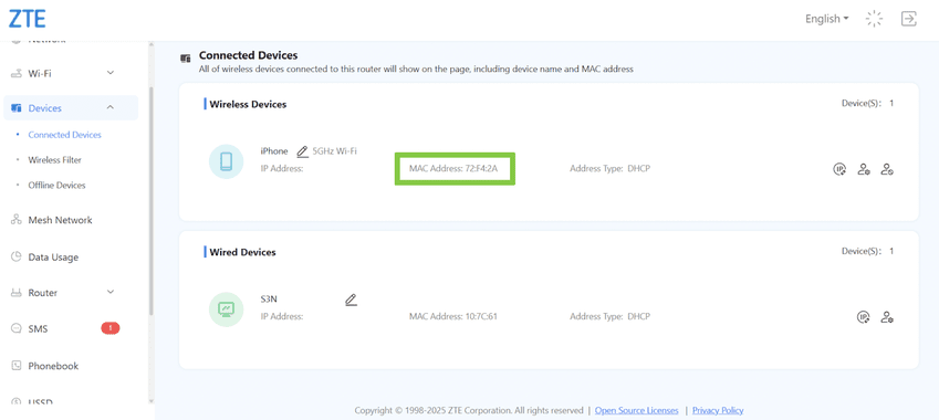 - Select the device you want to block from the list of connected devices and copy its MAC address.