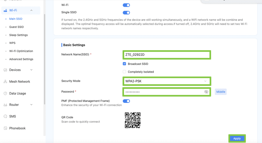 - Or if you choose the ‘Wi-Fi' option from the left-hand menu, make sure to select ‘Main SSID’ from the drop-down list.