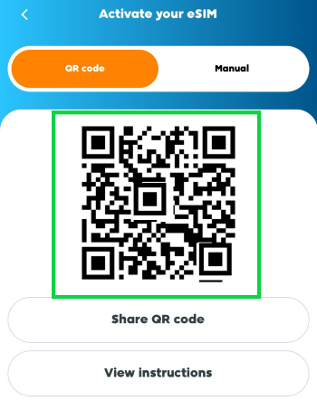 - Scan the QR code with the device that will be used to set up the eSIM.