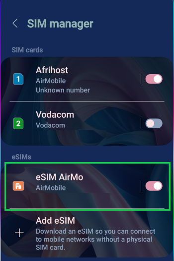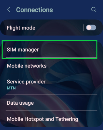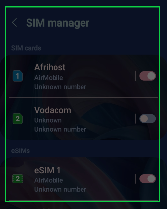- You will be directed to your device’s SIM manager, where you will be able to see all your SIMs.