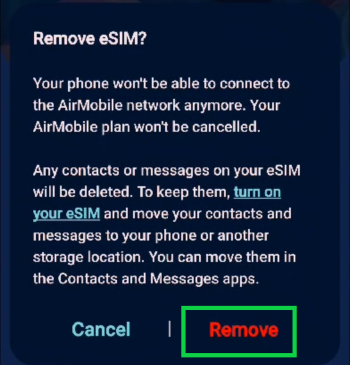- Tap on ‘Remove’. Some devices will have ‘Delete eSIM’.