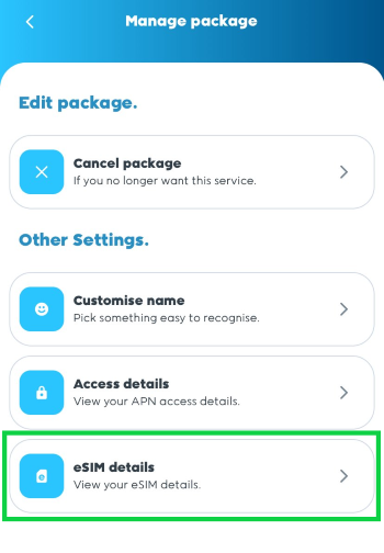 - Select ‘View’ beneath the eSIM AirMobile package that you'd like to add to a new device.