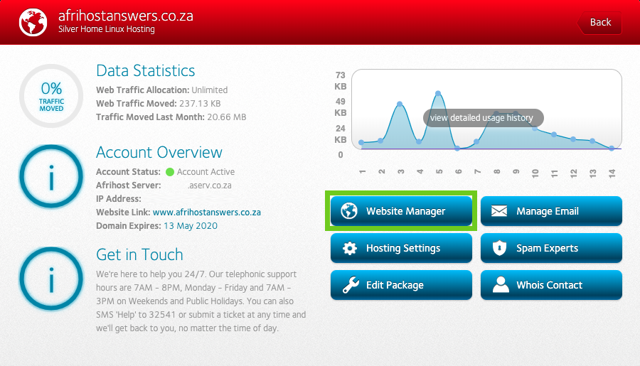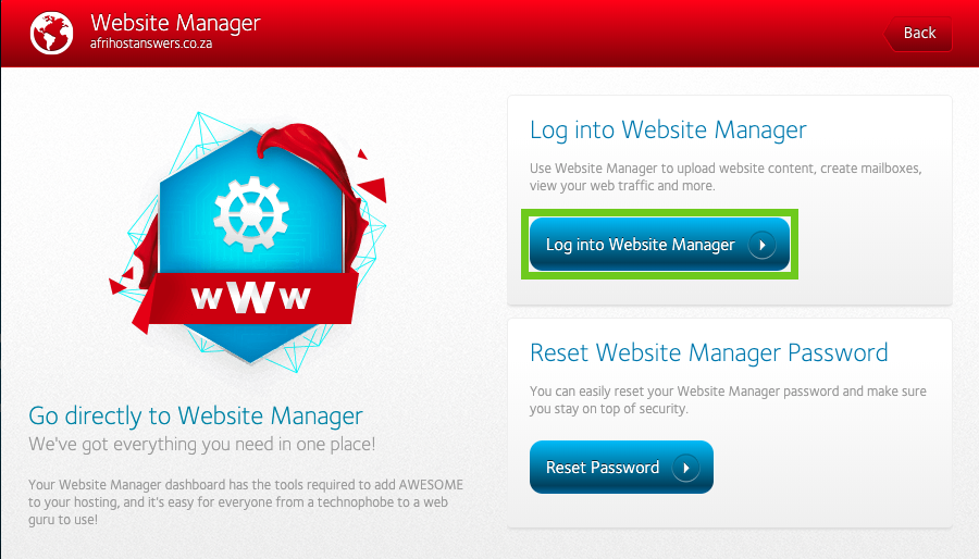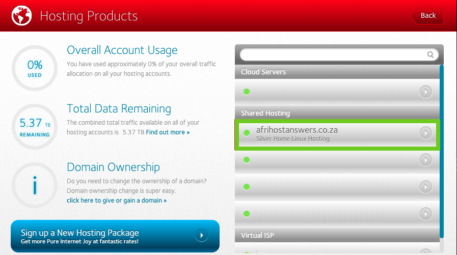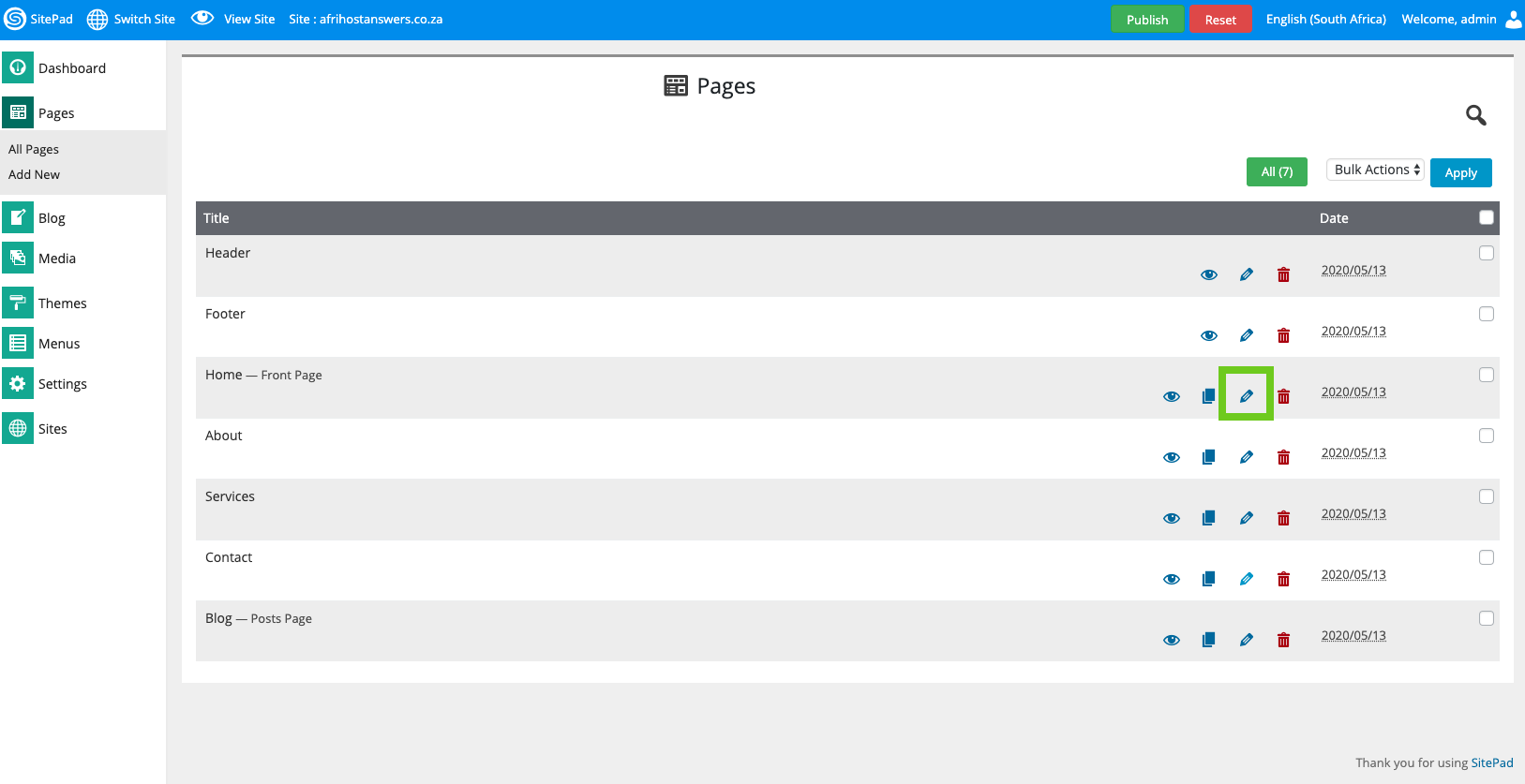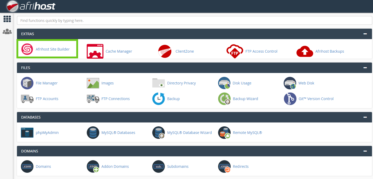 - Select ‘Afrihost Site Builder’ in cPanel or ‘Sitepad’ in CWP control panel.