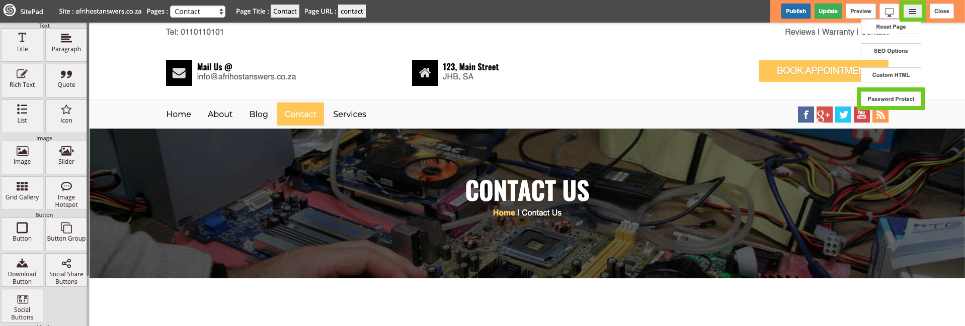 SiteBuilder allows you to add a password to a specified page on their website to restrict access requiring a password to gain access to the page. The rest of the website will be visible to all.