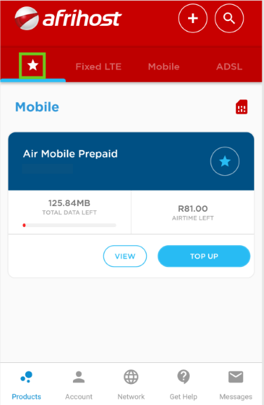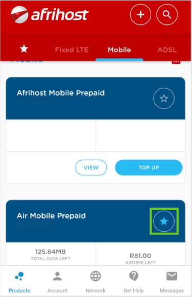 Follow the steps below to pin your favourite product(s) in the Afrihost Mobile App: