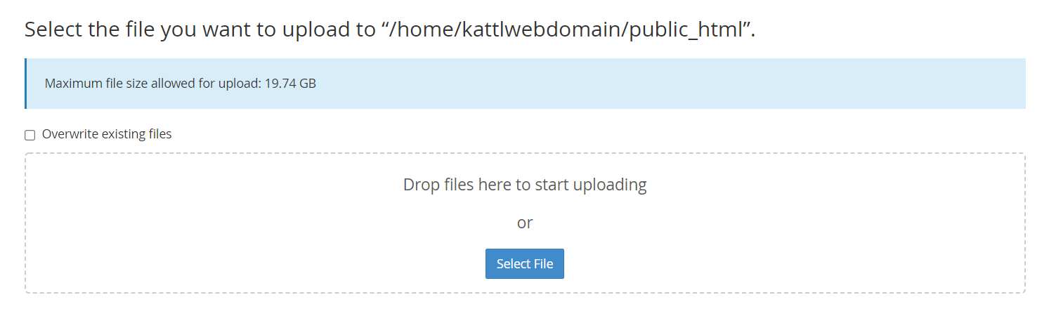 - Select or drag and drop the website files from your computer that you wish to upload to the public_html file.