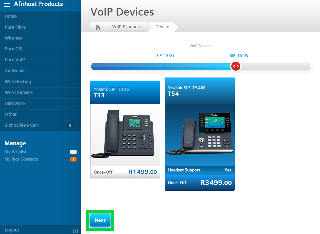 - Select the device you wish to purchase e.g: VoIP Devices.