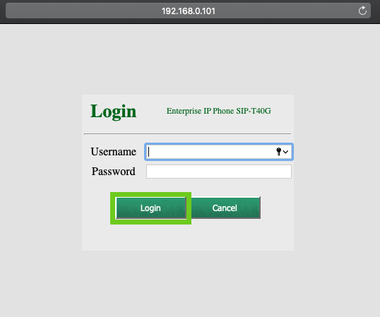 - Navigate to the IP address of the Yealink phone in your browser, and then press ‘Enter’ to search.