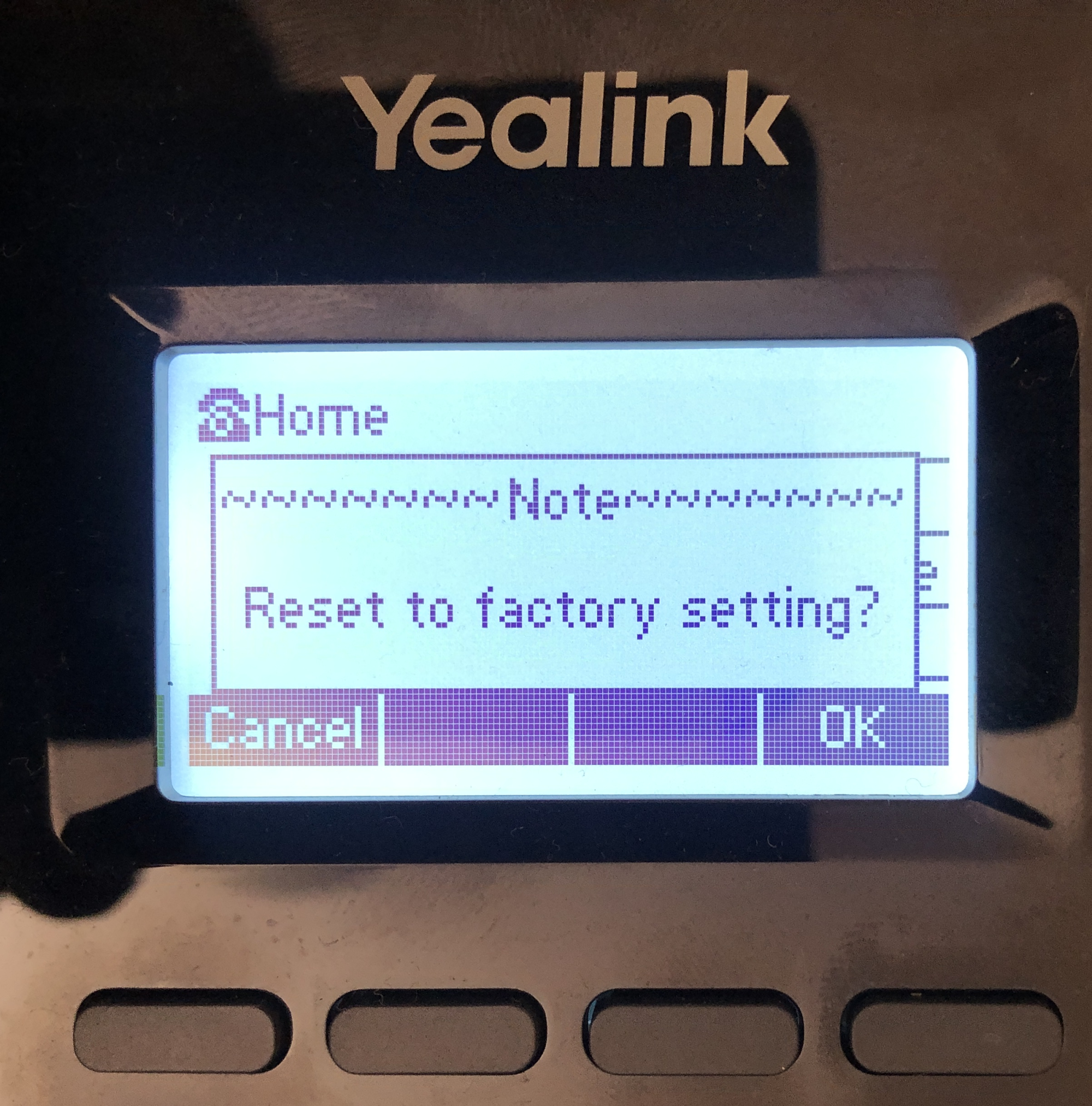 - Press and hold the ‘OK’ key on the phone for 10 seconds.