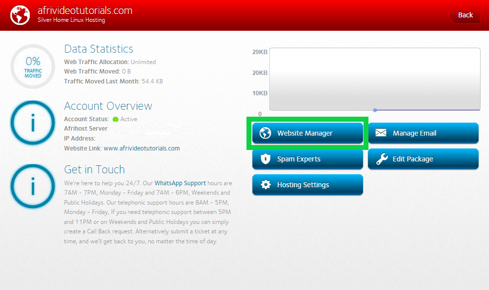 - Click on the ‘Website Manager’ button.