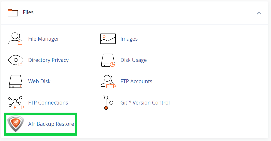 Follow the steps below to restore a backup for a website using Afribackup in cPanel.