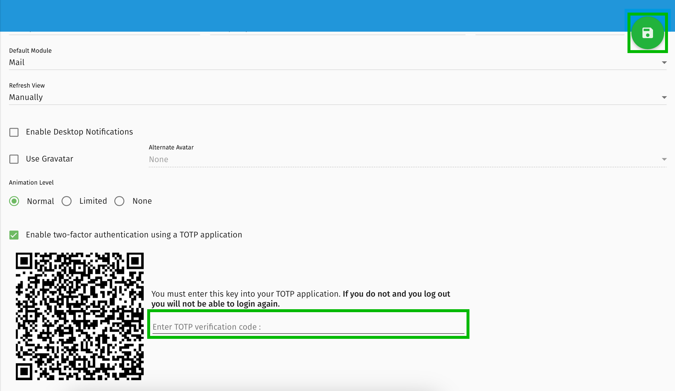 - Scroll down and select the ‘Enable two-factor authentication using a TOPT Application’.