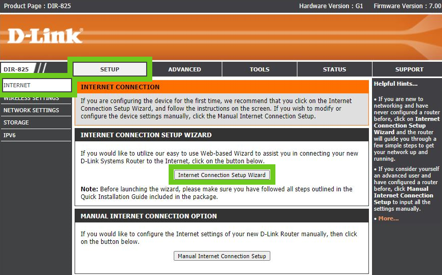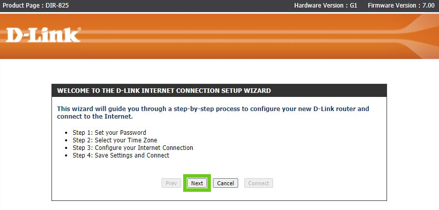 Follow the steps below to set up the newer D-Link 825 router for DHCP: