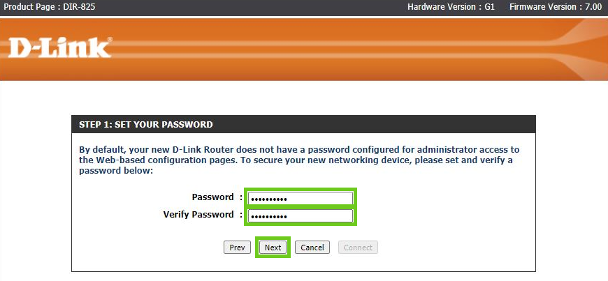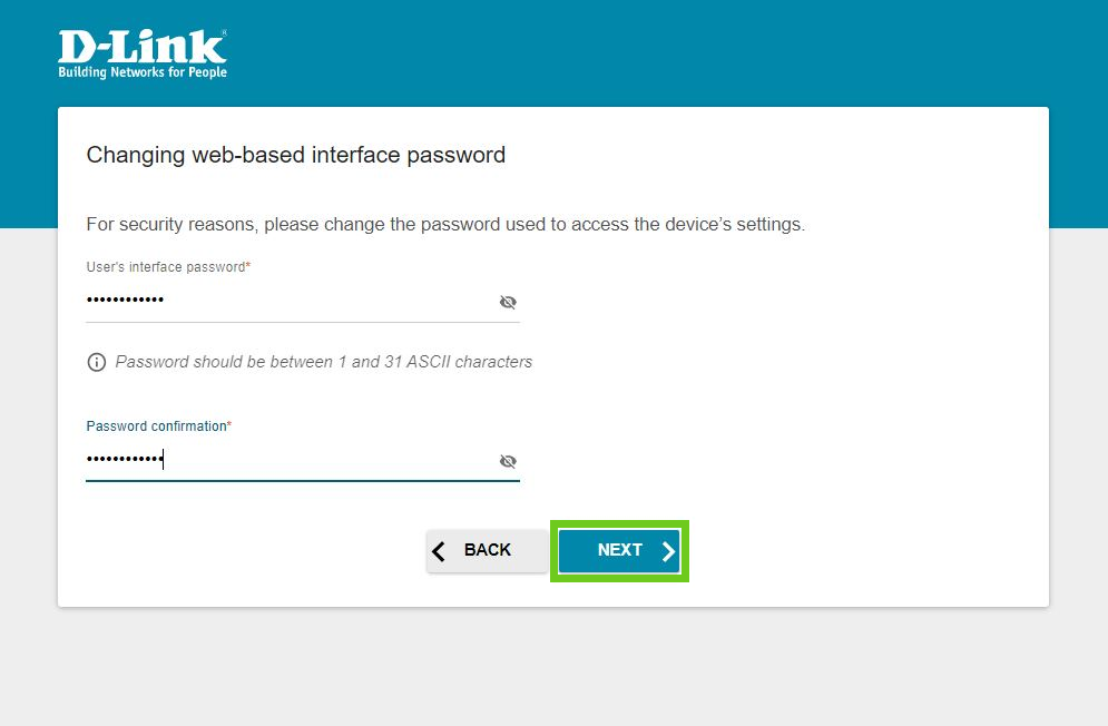 - You will be required to set up a new password for the router if it is the first time logging in and click ‘Next’.