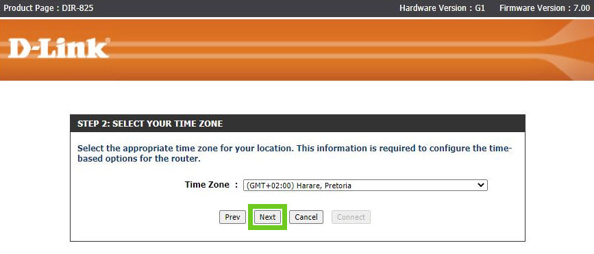- Step 2 will require you to select the correct time zone of your location. From the drop-down menu select the time zone. South Africa is GMT+2. Then click ‘Next’.