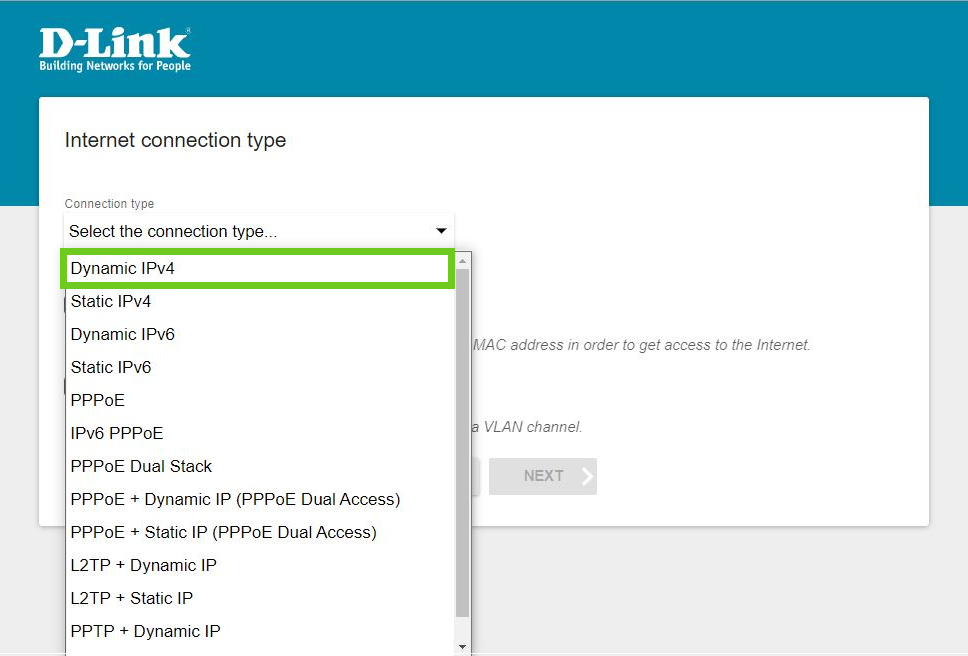 - Under Connection Type, from the drop-down menu select ‘Dynamic IPv4’