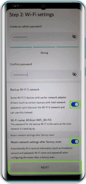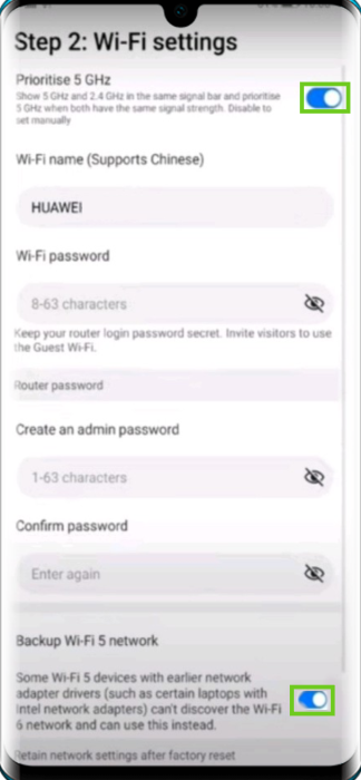 5. Network Settings required to configure the Huawei router using the Huawei AI Life app