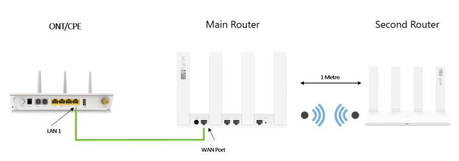 - Place the second router near the main router, recommended within 1 meter and connect the second router to the power supply.