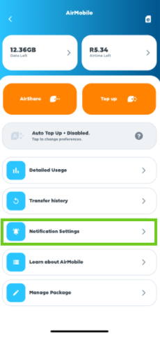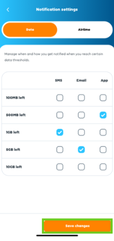 - Or select ‘Airtime’ at the top to set up the notifications for airtime usage.