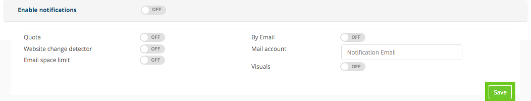 - Email account space limit: Notify when one or more email accounts are approaching the quota limit.