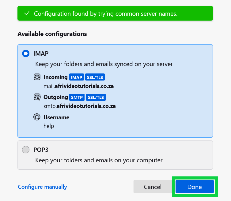 You have successfully set up your Afrihost Pure Mail in Thunderbird.