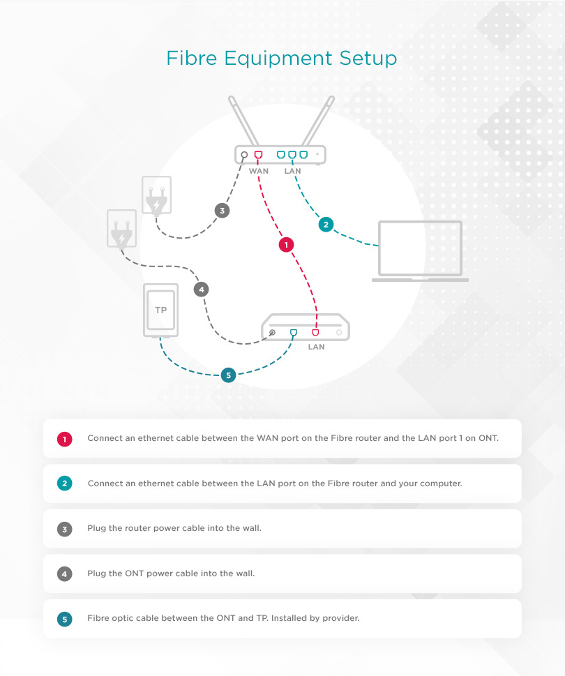 After the CPE /ONT box is installed on your property, you will need to set up your fibre router equipment.